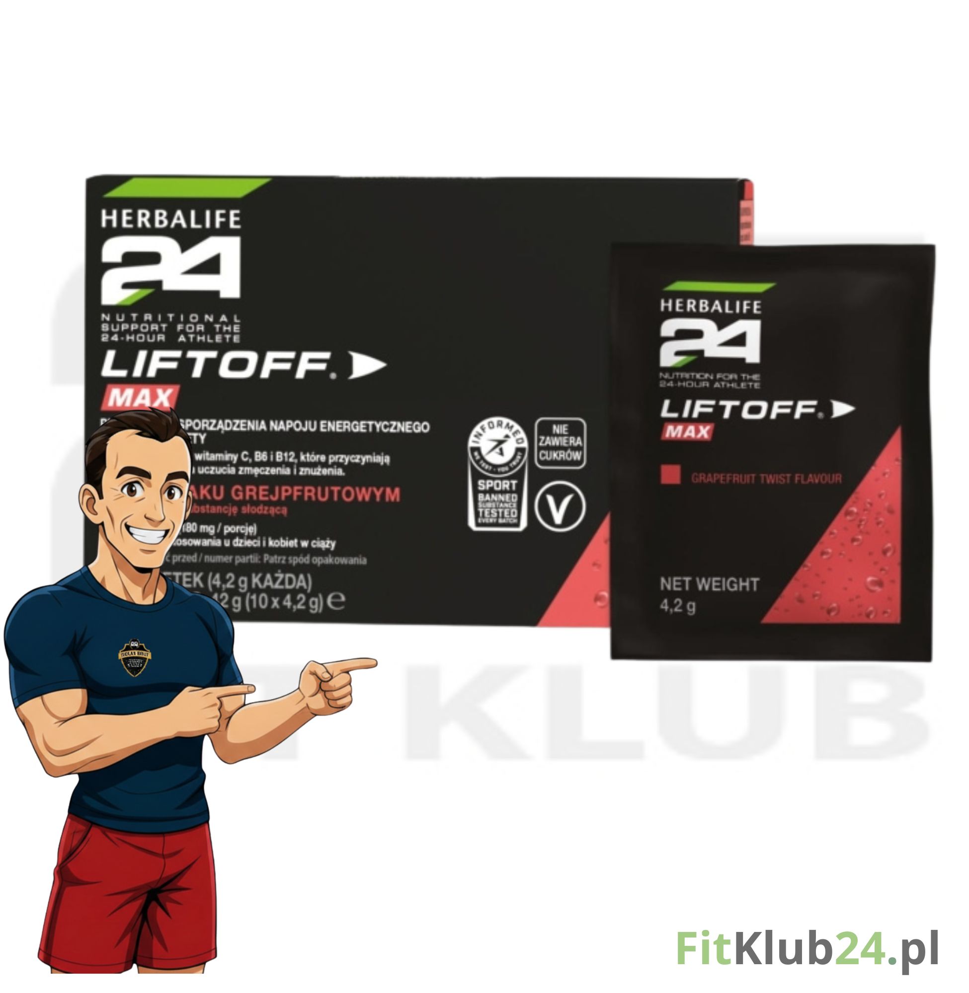 Liftoff Max Herbalife24 – dodaj mocy swoim treningom. To grejpfrutowy napój energetyczny nie zawierający cukrów, a każda porcja dostarcza 180 mg kofeiny. Ale to nie wszystko! LiftOff Max zawiera witaminy C, B6 i B12, które przyczyniają się do zmniejszenia uczucia zmęczenia i znużenia.