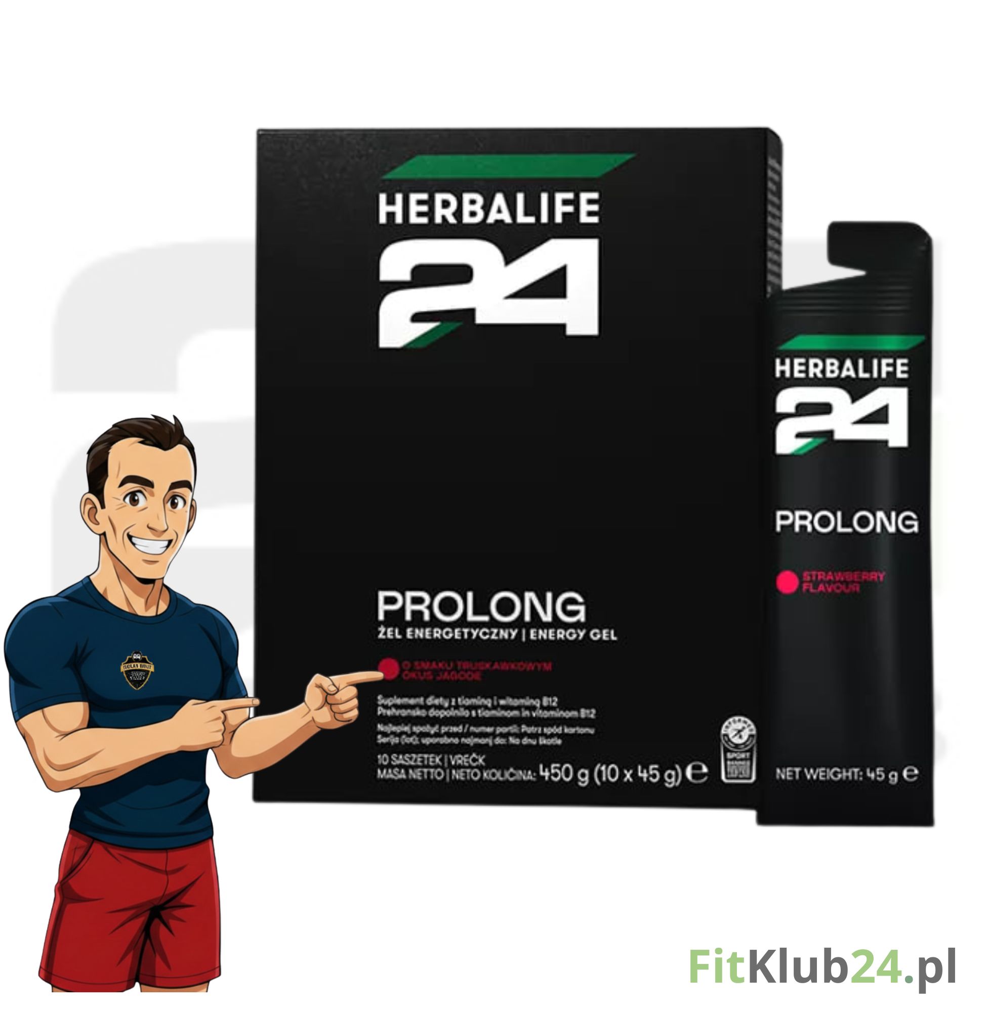Prolong jest dostępny w soczystym owocowym smaku truskawkowym i zawiera również kompleks witamin z grupy B*, przyczyniając się do prawidłowego metabolizmu energetycznego. Witamina B12 przyczynia się do zmniejszenia zmęczenia i znużenia.